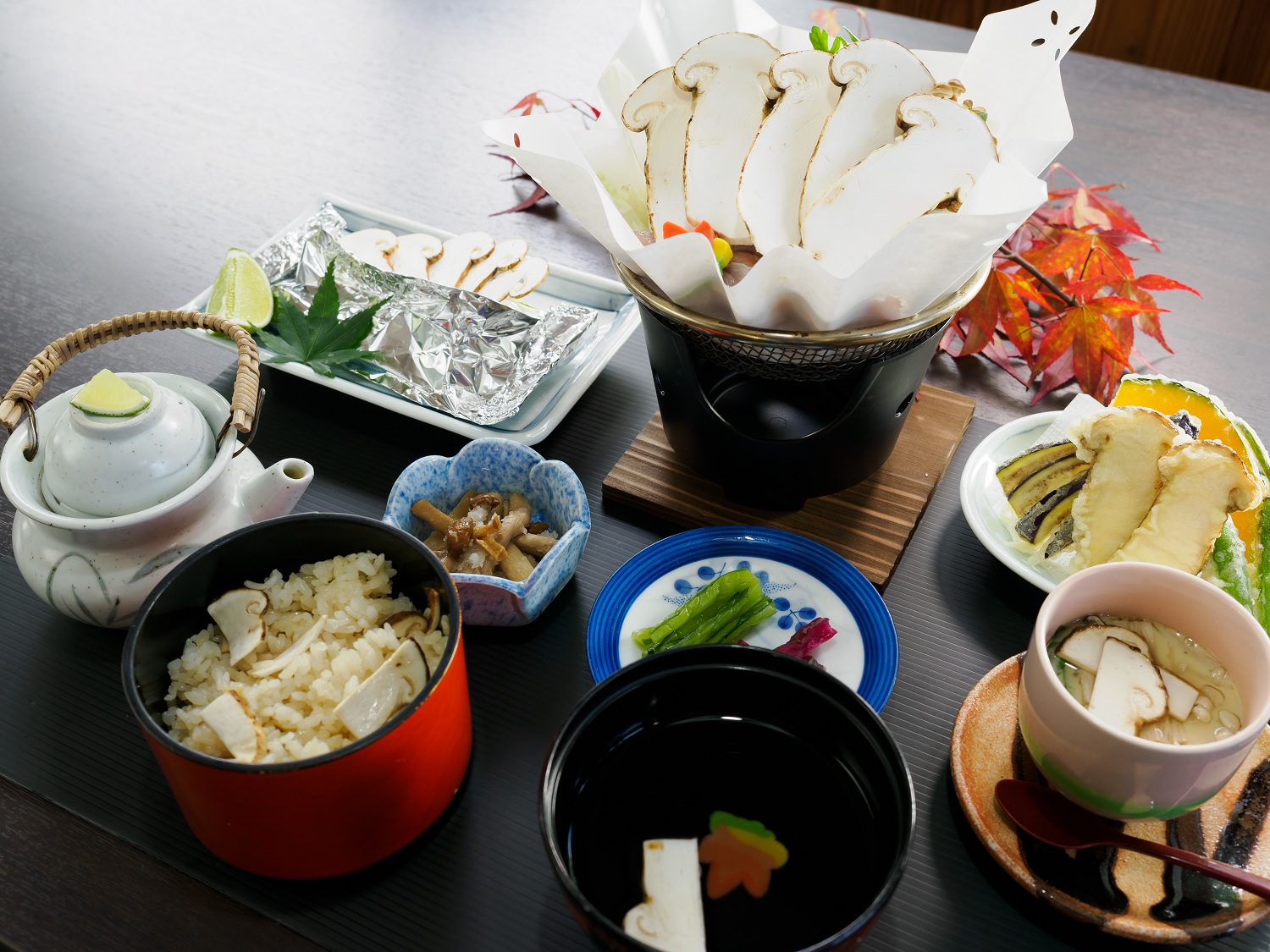 (松茸鍋・どびん蒸し・松茸天ぷら・お新香・松茸ごはん・松茸のお吸い物・茶碗蒸し・銀蒸し)